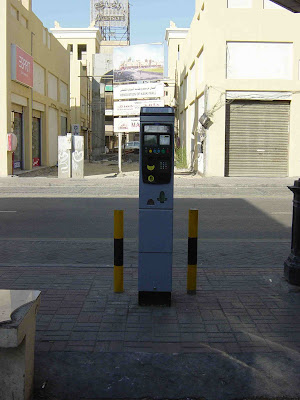 From a quick trip downtown, yesterday. The lonely parking meter I reported on last week. Did not see a single person use this to park the whole time we were in the gold souks area. Not one. Bet this process is going to work out real well. Revenue generating. [Try ticketing drivers who run red lights, speeders, etc. You'd see a tremendous jump in revenue. Just a thought.]